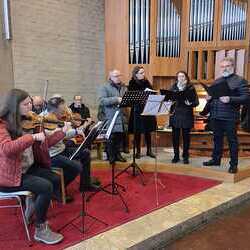 Der Kirchenchor, begleitet von Flöte, Geigen und Orgel sorgte für weihnachtliche Stimmung.